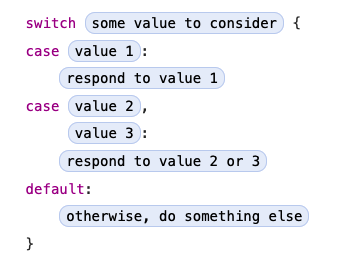 Switch의 케이스 일치 값은 임시 상수 혹은 변수에 담길 수 있다. 복잡한 조건은 각 케이스의 where 절로 표현될 수 있다.